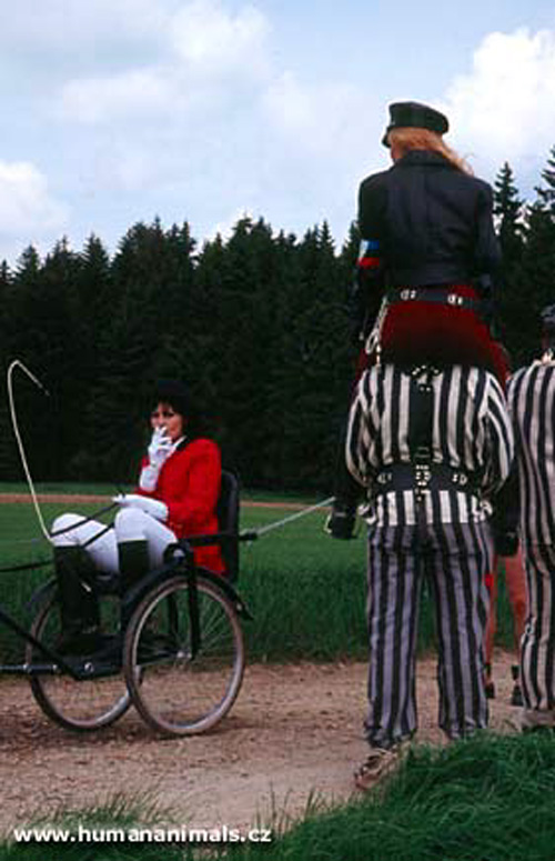 囚人を馬にして巡視する女性兵士。
