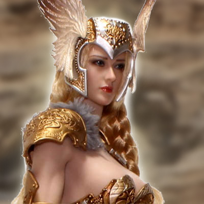 画像は、 兜をかぶると、凛々しさが引き立ち、 しかも、なぜか、ますますお美しくなられる、 北欧・ノルウーマン公国の女戦士にして 征服者のスカラーさま